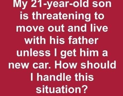 One single mother recently faced such a dilemma with her 21-year-old son. Living at home while attending community college part-time and working sporadically, he began to express increasing frustration about his lack of transportation. Eventually, he issued an ultimatum: either she buy him a new car, or he would move in with his father, who had previously been mostly absent from his life.