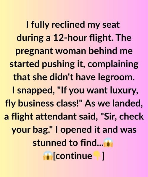 “Sir,” she said, her voice calm but oddly pointed. “Before you disembark… check your bag.” Confused, I pulled my backpack from the overhead bin.