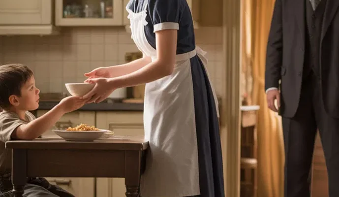 And there she saw it: her maid standing in the corner, watching a ragged, dirt-covered boy devour food from a porcelain bowl. The sight was so shocking that she almost dropped her briefcase.