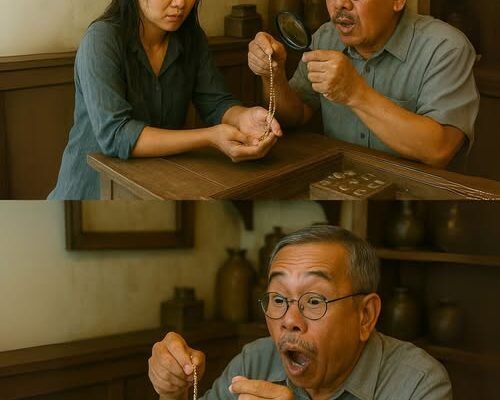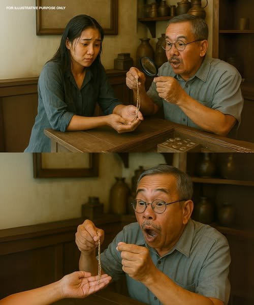 The pawnbroker—a man around fifty with streaks of gray in his hair—handled the necklace gently, lifting it toward the light. Then unexpectedly, his hands quivered, his eyes widening in disbelief.