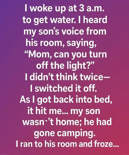 As I made my way to the kitchen to get a glass of water, I suddenly heard my son’s voice calling from his room.