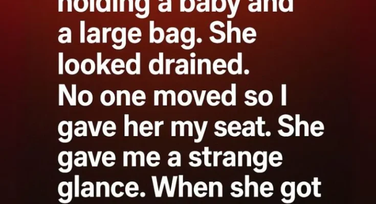 No one moved. No one offered her a seat. My back was aching that day, yet something within me refused to let the moment pass. Slowly, I rose and gestured for her to take my place. She looked at me, hesitating between speech and silence, before lowering herself with only the faintest nod.