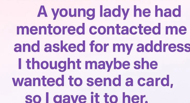 Fast forward to December. A young woman he had mentored contacted me and asked for my address.