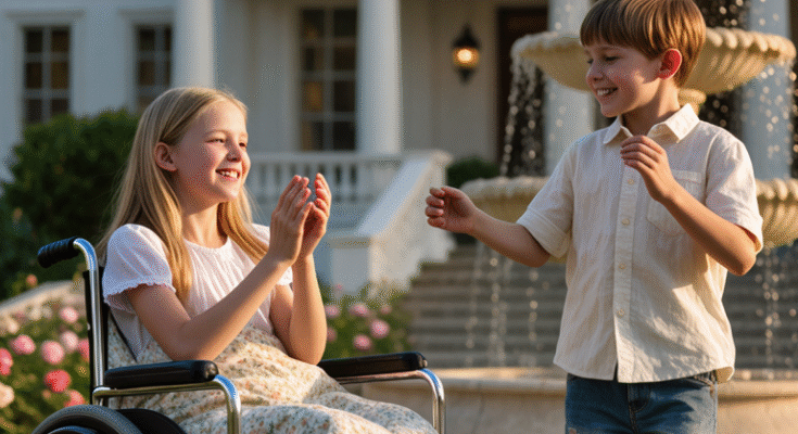 Every morning, he rushed to her side with new dances, silly faces, and games he invented on the spot. He wheeled her through the garden, taught her to clap to his rhythm, and encouraged her to move her arms like she was dancing too.