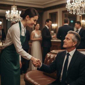 But then a burst of laughter pierced the air. “What’s this?” someone said near the bar. Another, louder voice. “Look at that, the waitress and the millionaire. All that’s left is for her to kiss him to earn the tip.” And then, like a spark on gasoline, the murmurs turned into whispers. The laughter grew, the looks turned harsh, not from everyone, but from enough.