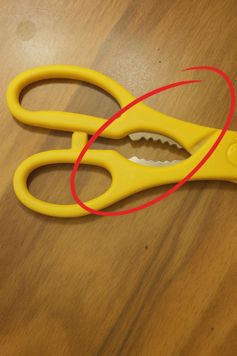 Have you ever noticed that jagged, tooth-like section hidden between the handles of your kitchen scissors, right behind where your fingers rest? You may have wondered what it’s for. If you’ve never used this little feature, you’re not alone. Many people think it’s just decorative or unnecessary.