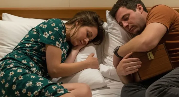 As I woke up that night, the first thing I noticed was the emptiness beside me. The hotel room was dark, painted with thin lines of moonlight filtering through the curtains. Ryan, my new husband, wasn’t holding me like he had fallen asleep doing just hours before. Instead, he was turned away, his broad back slightly hunched, his arms wrapped protectively around something small and wooden.