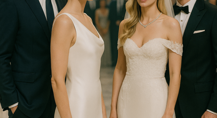 She wore a white silk gown, not a wedding dress but something even more striking—elegant, confident, and timeless. Her hair was pinned in a graceful twist, a diamond bracelet catching the hotel lights.