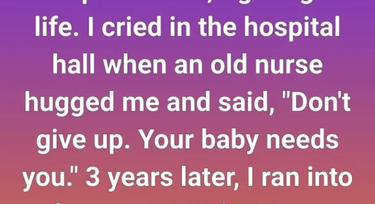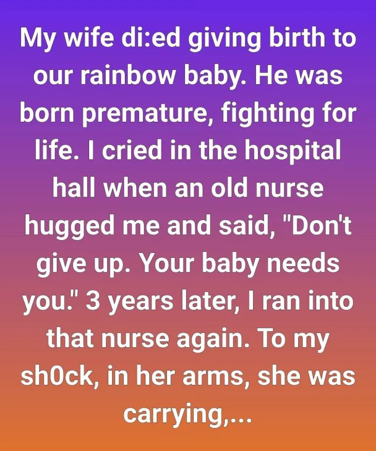 My wife had di:ed while delivering our rainbow baby, and my son came into the world too early, fighting for every shallow breath. I still remember sinking to the hospital floor, shaking and helpless, when an older nurse knelt beside me, wrapped her arms around my shoulders, and murmured,