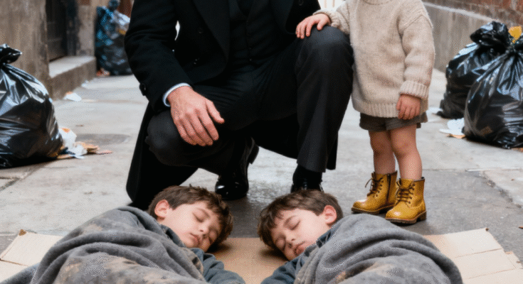 That Friday afternoon, as his eight-year-old son Caleb knelt beside two small boys sleeping near a dumpster behind a strip mall, Mark felt the ground shift beneath him. Something about the scene—two children curled under a torn blanket, their tiny bodies pressed together for warmth—hit him harder than he expected.