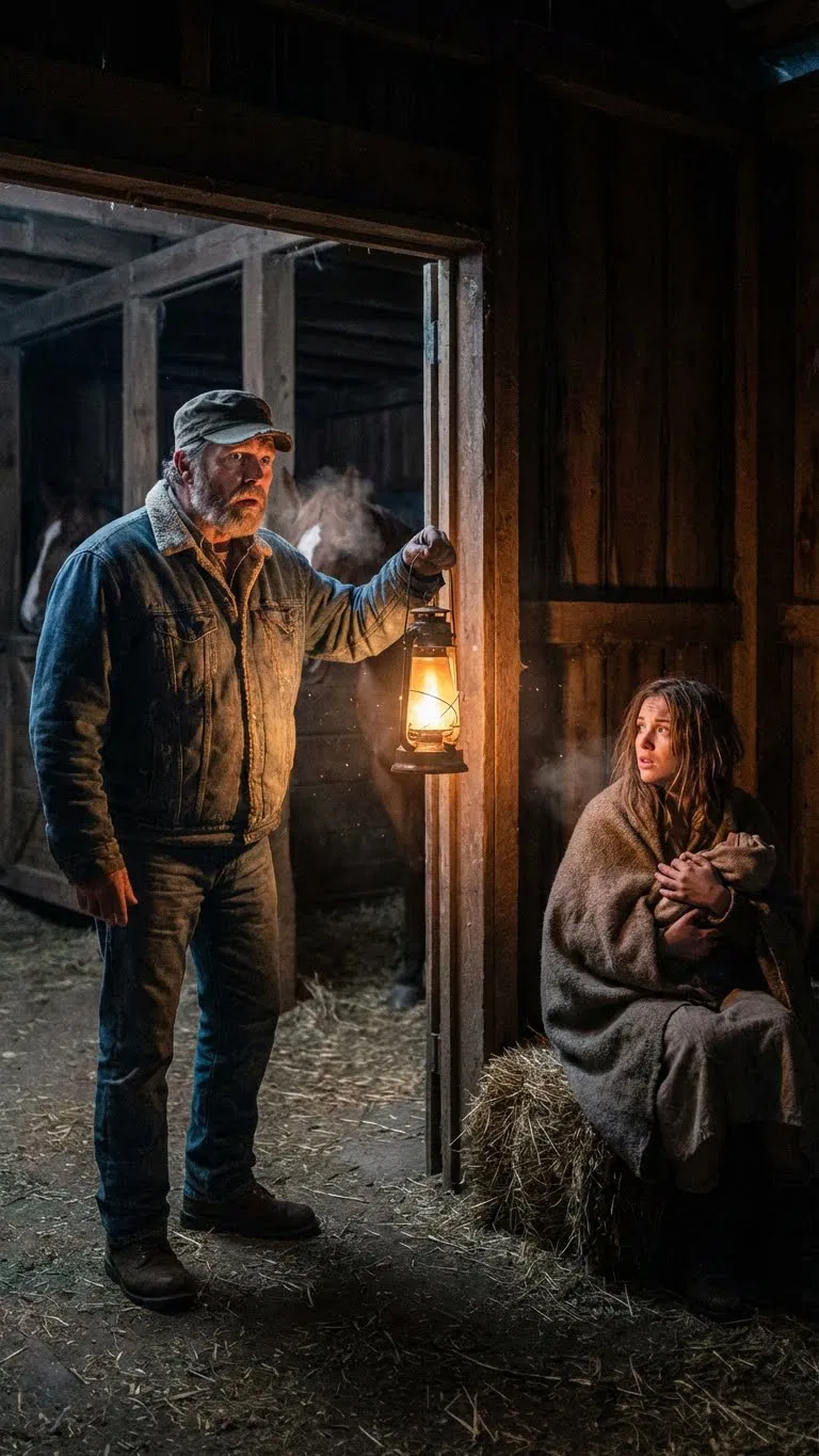He froze. Another small whimper followed, thin and desperate. Lifting the lantern, he swept its light across stalls and beams until it caught on a shape in the far corner, near his stack of old tack.