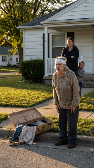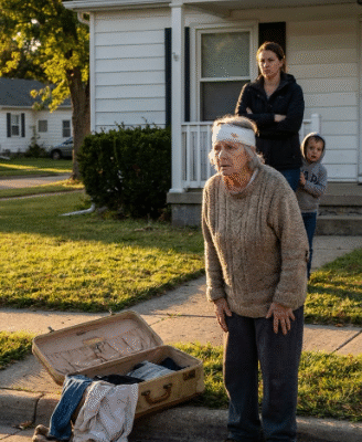 Across the street, Mrs. Charlotte’s curtain shifted, her little American flag trembling in the draft. I stood there in soft hospital socks on cold concrete, sixty-eight years old, widowed, bruised, barely healed—and suddenly homeless.