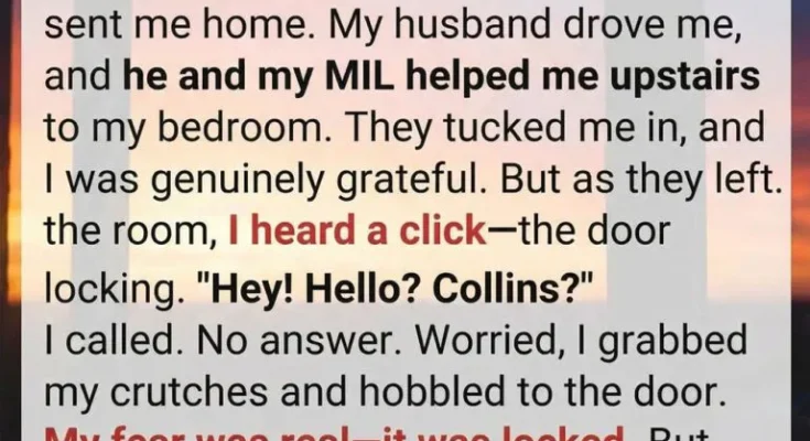 Uneasy, I grabbed my crutches and shuffled to the door. My stomach dropped—it was locked.