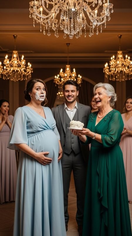 And that night—standing in a room full of people while cake slid down my pregnant face and laughter echoed around me, including his—I finally understood the weight of that secret.