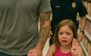 The Little Girl Lifted Her Hand With All Five Fingers Spread — But It Wasn’t a Simple Greeting. It Was a Quiet Plea for Help, a Hidden Signal Only a Trained Eye Could Recognize. The Officer’s Expression Changed Instantly — And What Happened Next Was Something No One in the Supermarket Saw Coming Read More